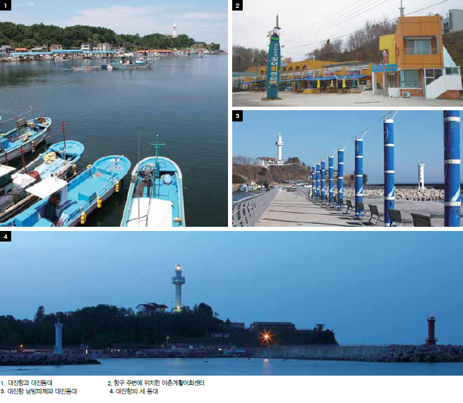 대진항은 아담하면서도 아늑한 분위기가 돋보이는 어항이다. 나직한 산자락이 항구를 에워싸고 항구 주변의 상점과 집, 골목등은 마치 1970, 80년대의 어느 바닷가 소도시를 고스란히 옮겨놓은 것처럼 소박하고 예스럽다. 항구 북쪽의 야트막한 언덕에 우뚝한 대진등대는 이 작은 항구의 풍경을 한결 아름답게 꾸며준다. 그래서 간혹 TV드라마나 영화가 촬영되기도 한다. 영화 ‘파이란’의 대부분 장면이 이곳에서 촬영되었다. 대진항 남방파제의 벤치에 앉아서 바라보는 대진항의 밤 풍경은 영화의 한 장면보다도 더 운치 있고 멋스럽다.